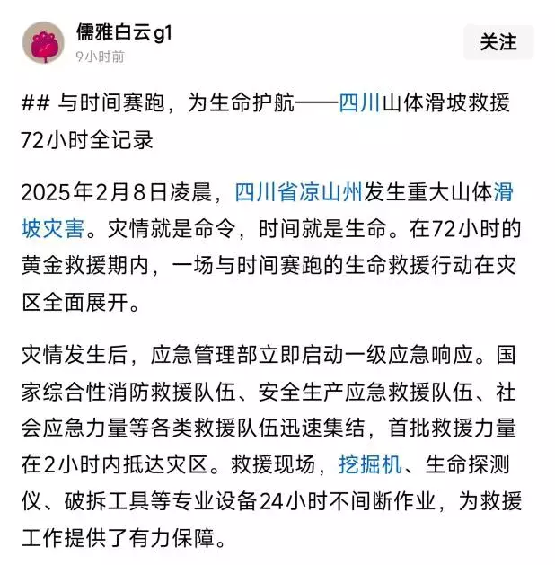 二、2025年2月11日,广东深圳网民许某鑫为吸粉引流、赚取流量收益,使用AI工具生成“四川山体滑坡”文案,但其中灾害发生地、救灾情况等内容均为AI工具凭空捏造,与事实严重不符,致使“四川凉山州遭遇山体滑坡”谣言扩散传播,扰乱公共秩序,造成不良社会影响。属地公安机关已对周某处以行政处罚。